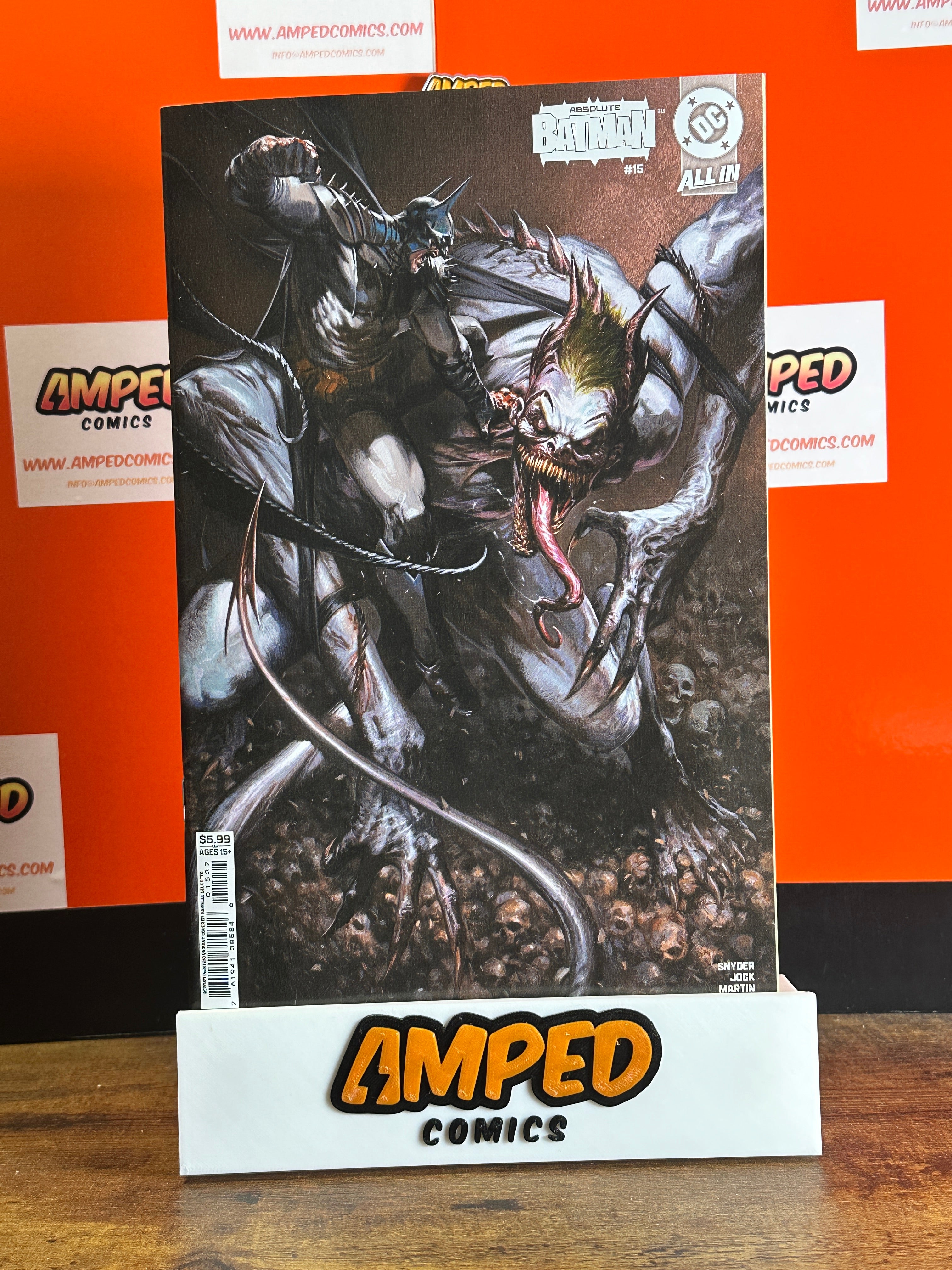 Absolute Batman #15 published by DC Comics. Written by Scott Snyder with artwork by Jock and Martin. This issue features Batman and Joker in a dramatic cover illustration. Published for readers aged 15 and up.