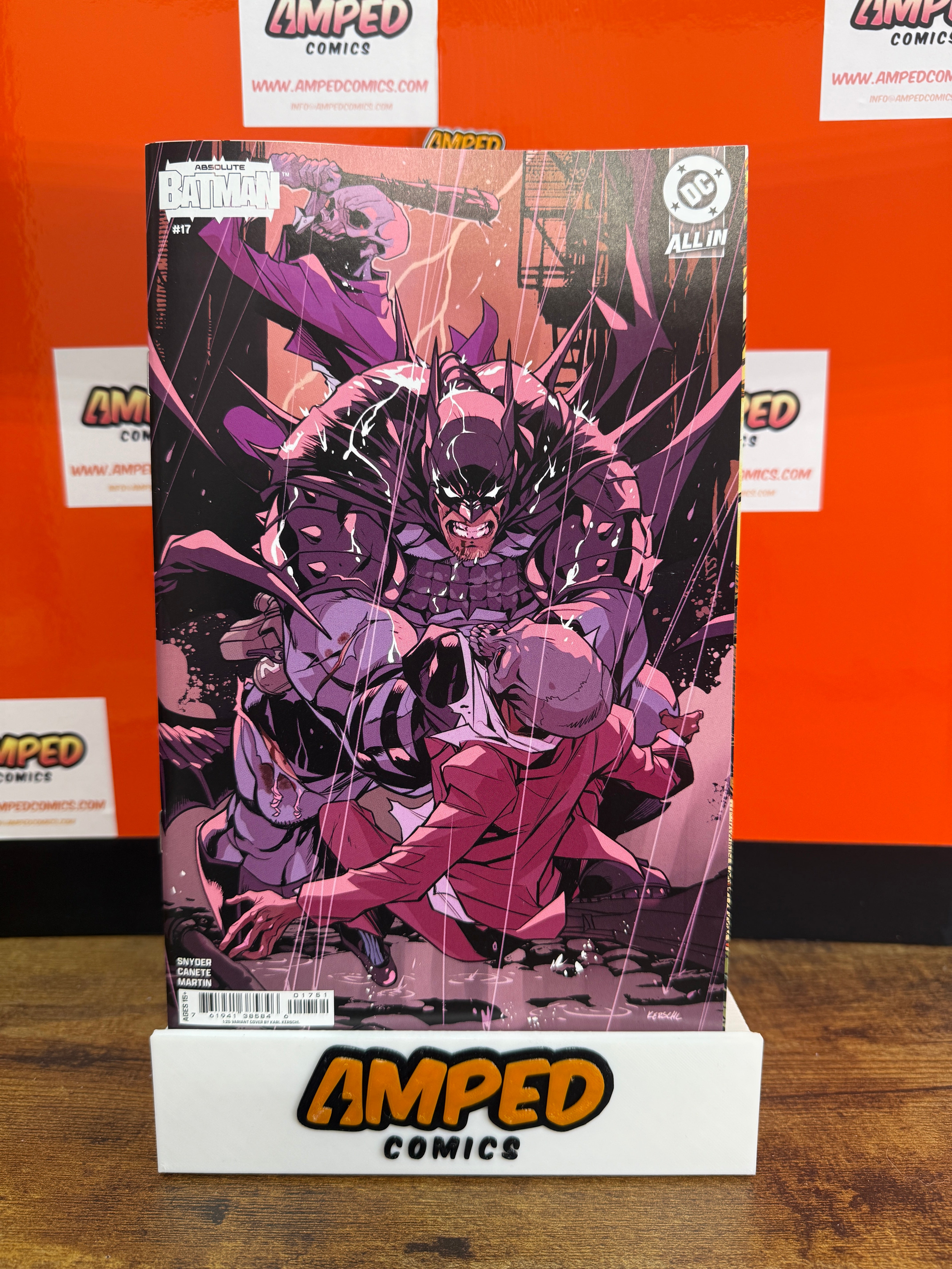 Absolute Batman #17, published by DC Comics. Written by Scott Snyder with artwork by Greg Capullo. Features Batman in a dramatic cover scene. Published as part of the DC All-In series.