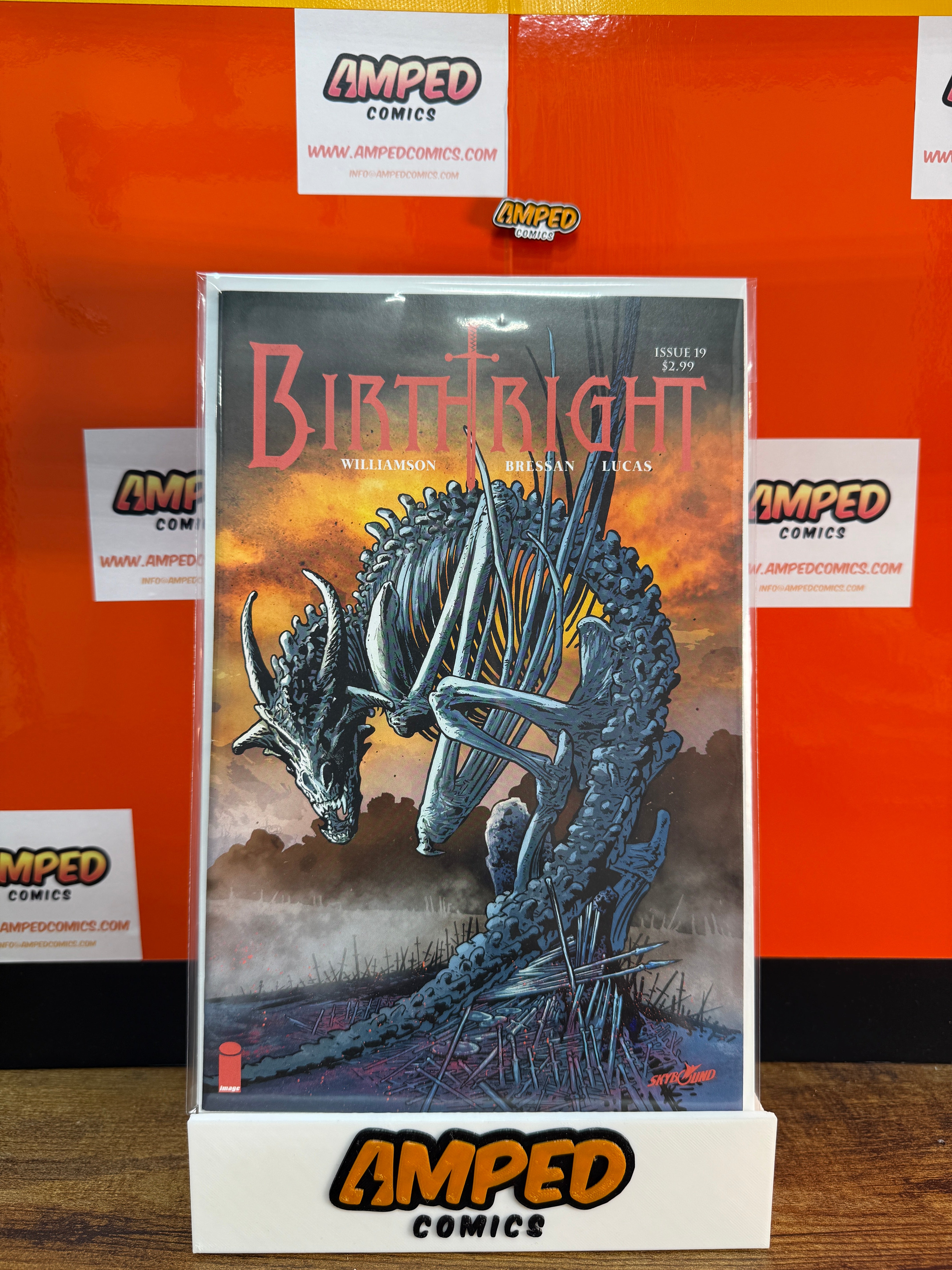 Birthright #19, published by Image Comics in 2016. Written by Joshua Williamson with artwork by Andrei Bressan and Adriano Lucas. The cover features a striking illustration by series artist Andrei Bressan.