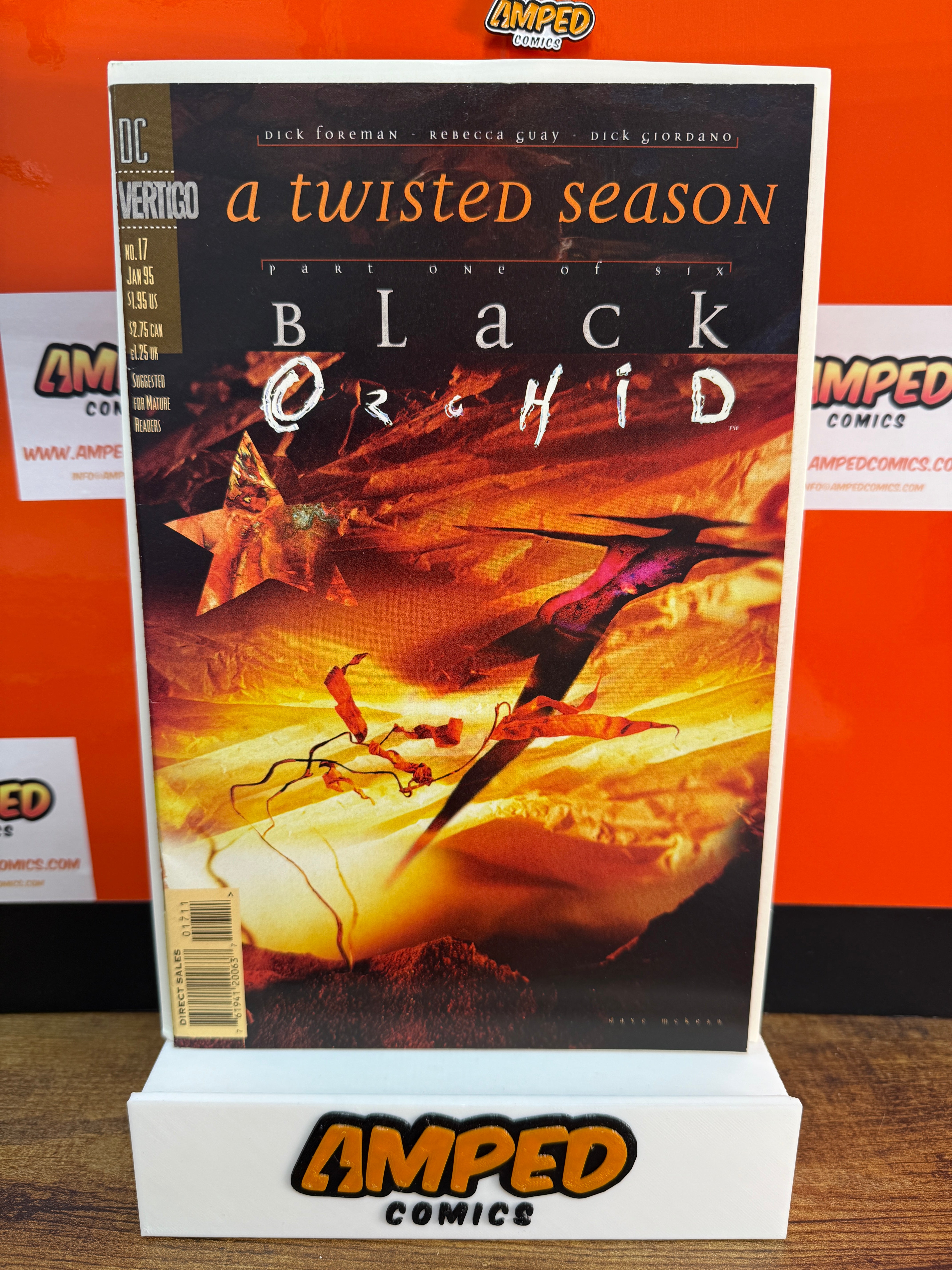 Black Orchid #17, published by DC Vertigo in January 1995. Written by Dick Foreman with artwork by Rebecca Guay and Dick Giordano. Part One of the six-part storyline 'A Twisted Season.' Suggested for mature readers.