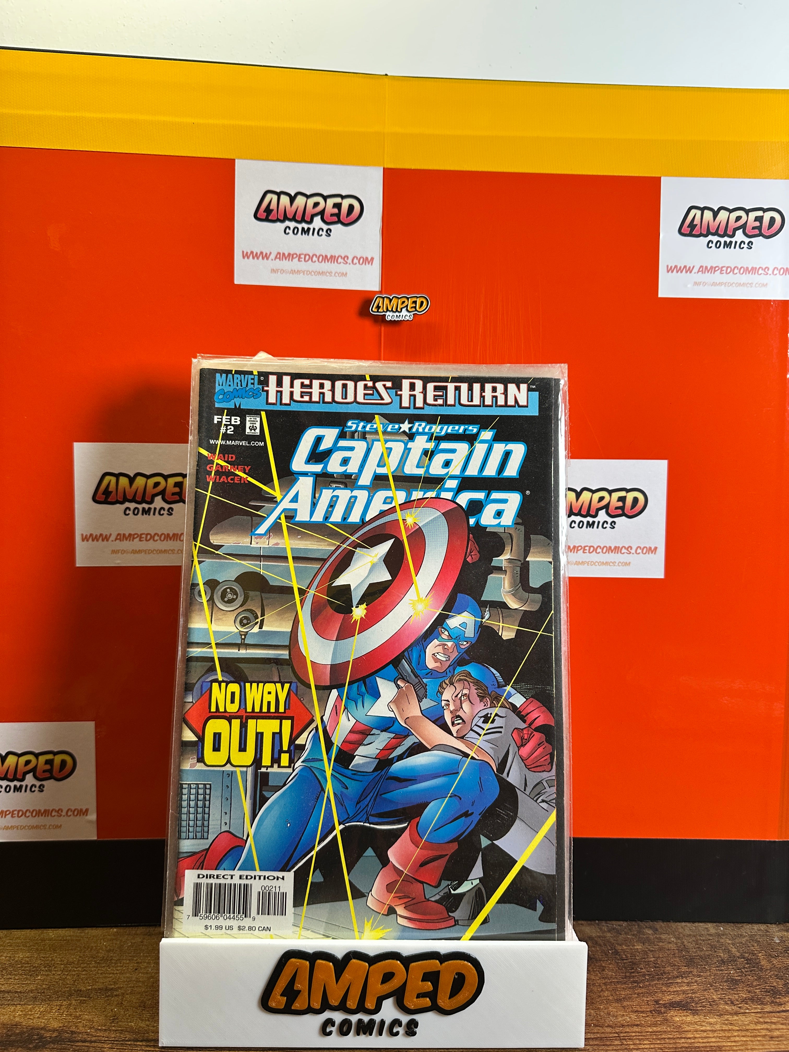 Captain America #2 from the Heroes Return series, published by Marvel Comics in February 1998. Written by Mark Waid with art by Ron Garney. Features Steve Rogers as Captain America in a storyline titled 'No Way Out!'