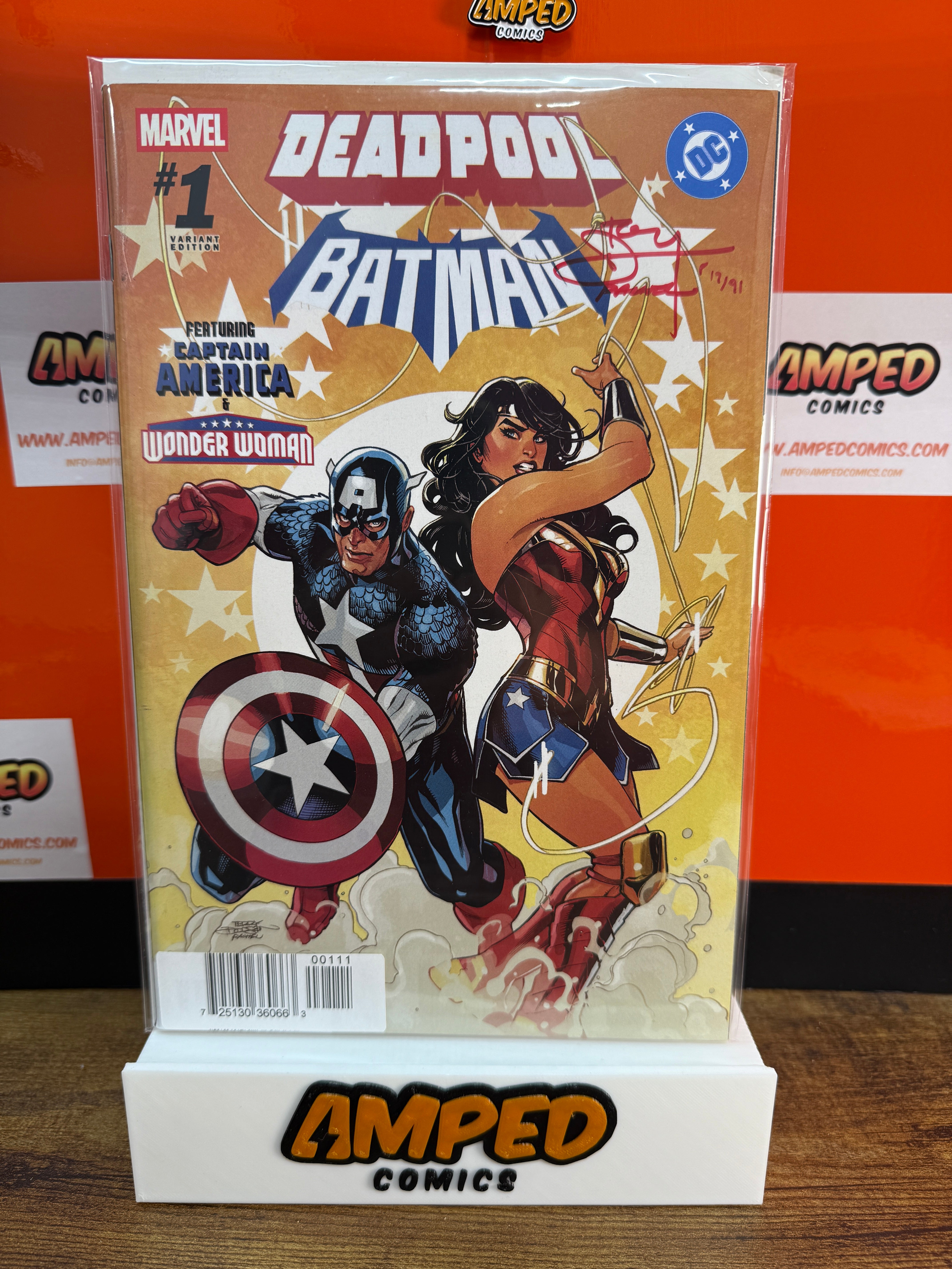 DEADPOOL BATMAN #1 BLOOD RED SIGNATURE SERIES SIGNED BY TERRY AND RACHEL DODSON. ONLY 91 EXIST AND THIS IS #19