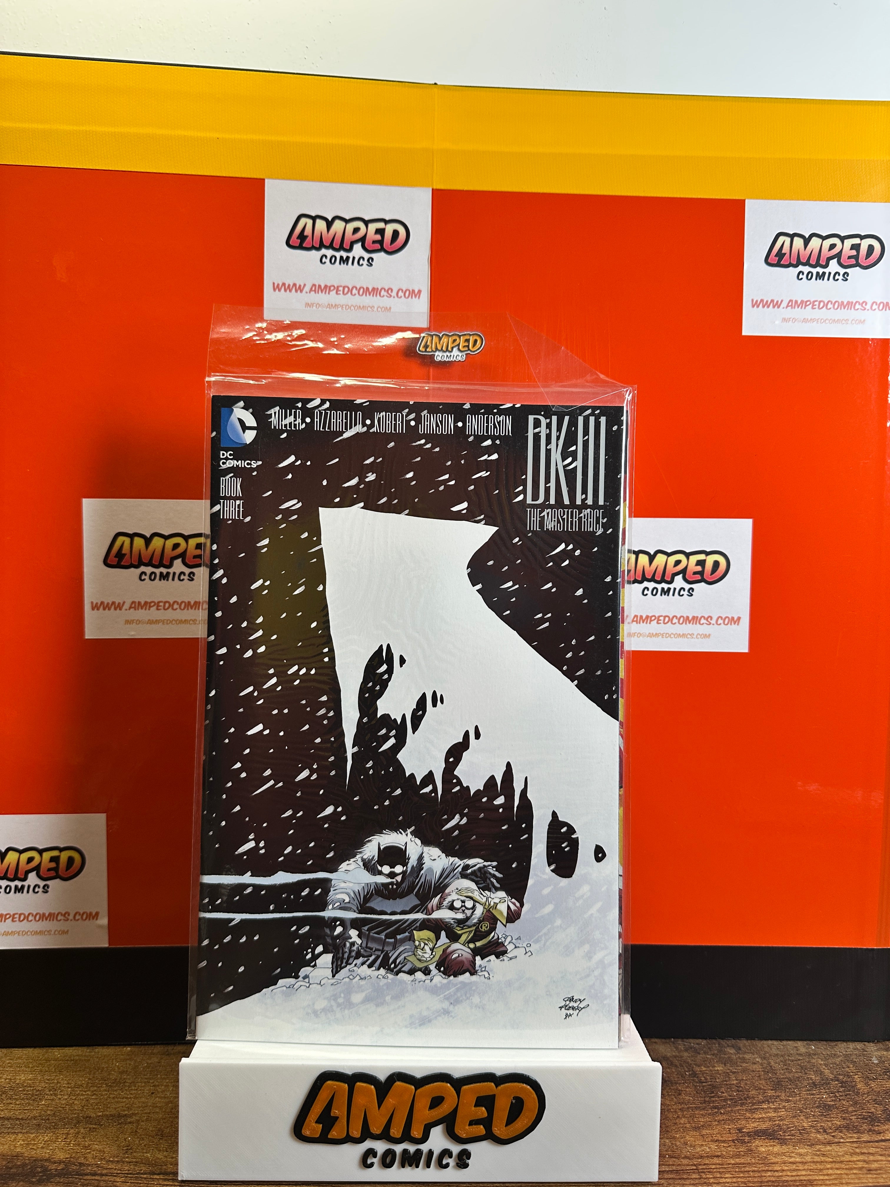 DK III: The Master Race Book Three, published by DC Comics. Written by Frank Miller and Brian Azzarello, with art by Andy Kubert and Klaus Janson. This issue is part of the Dark Knight III series, a continuation of the iconic Dark Knight Returns storyline.