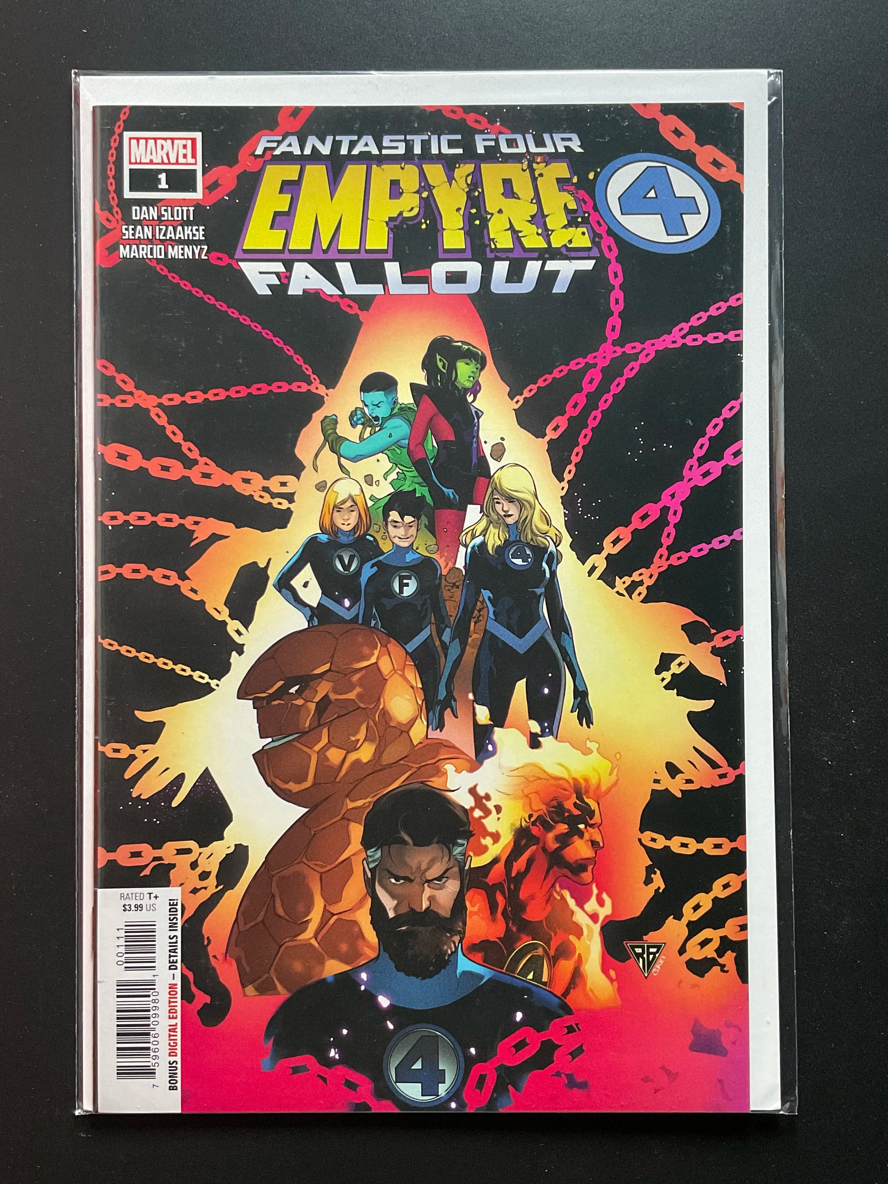 Fantastic Four: Empyre Fallout #1, published by Marvel Comics in 2020. Written by Dan Slott with artwork by Sean Izaakse and Marcio Menyz. Features the Fantastic Four and supporting characters. This issue ties into the Empyre storyline.