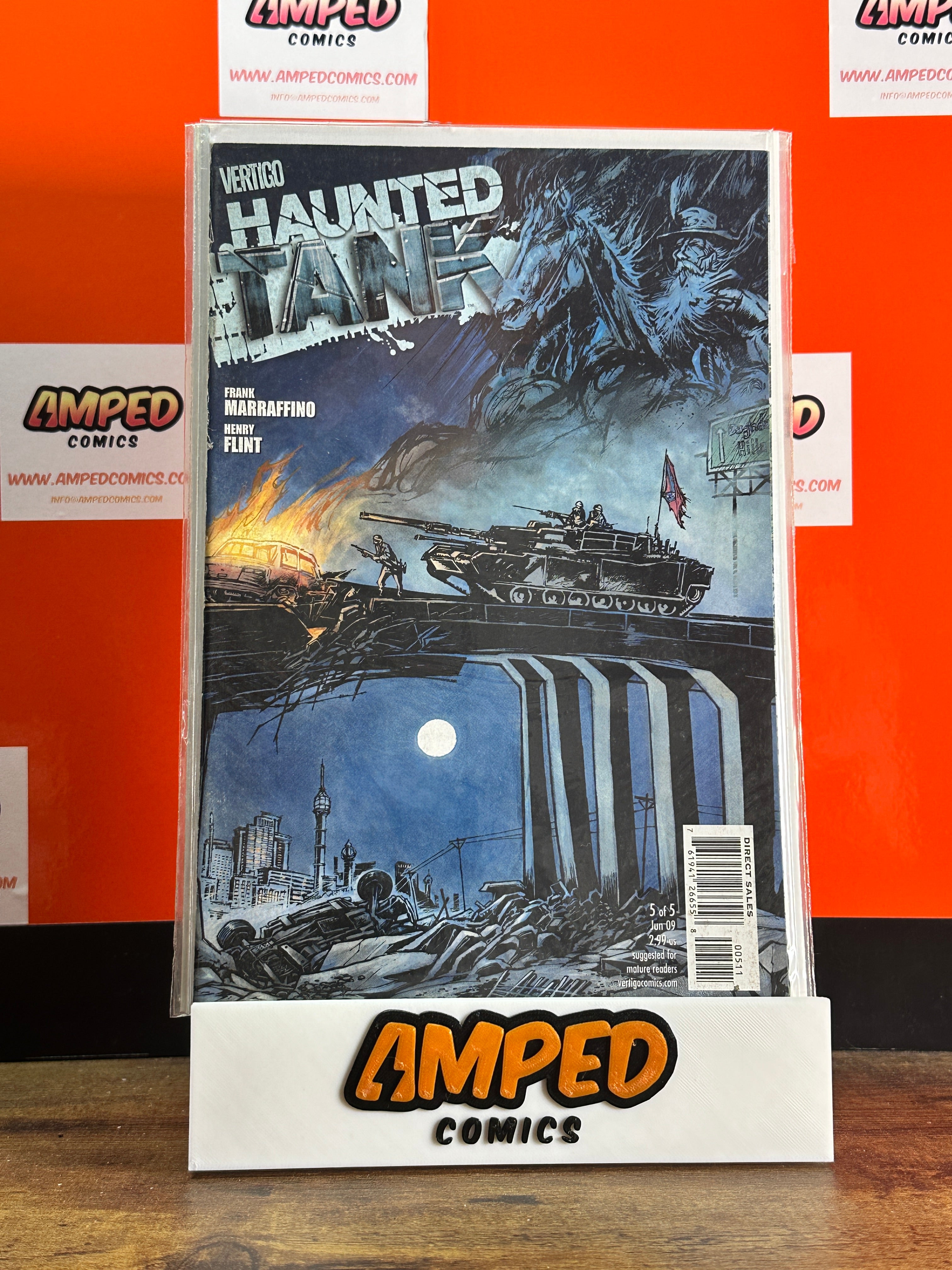 Haunted Tank #5, published by Vertigo Comics in June 2009. Written by Frank Marraffino with art by Henry Flint. The story features a supernatural tank and its ghostly crew navigating a post-apocalyptic world.