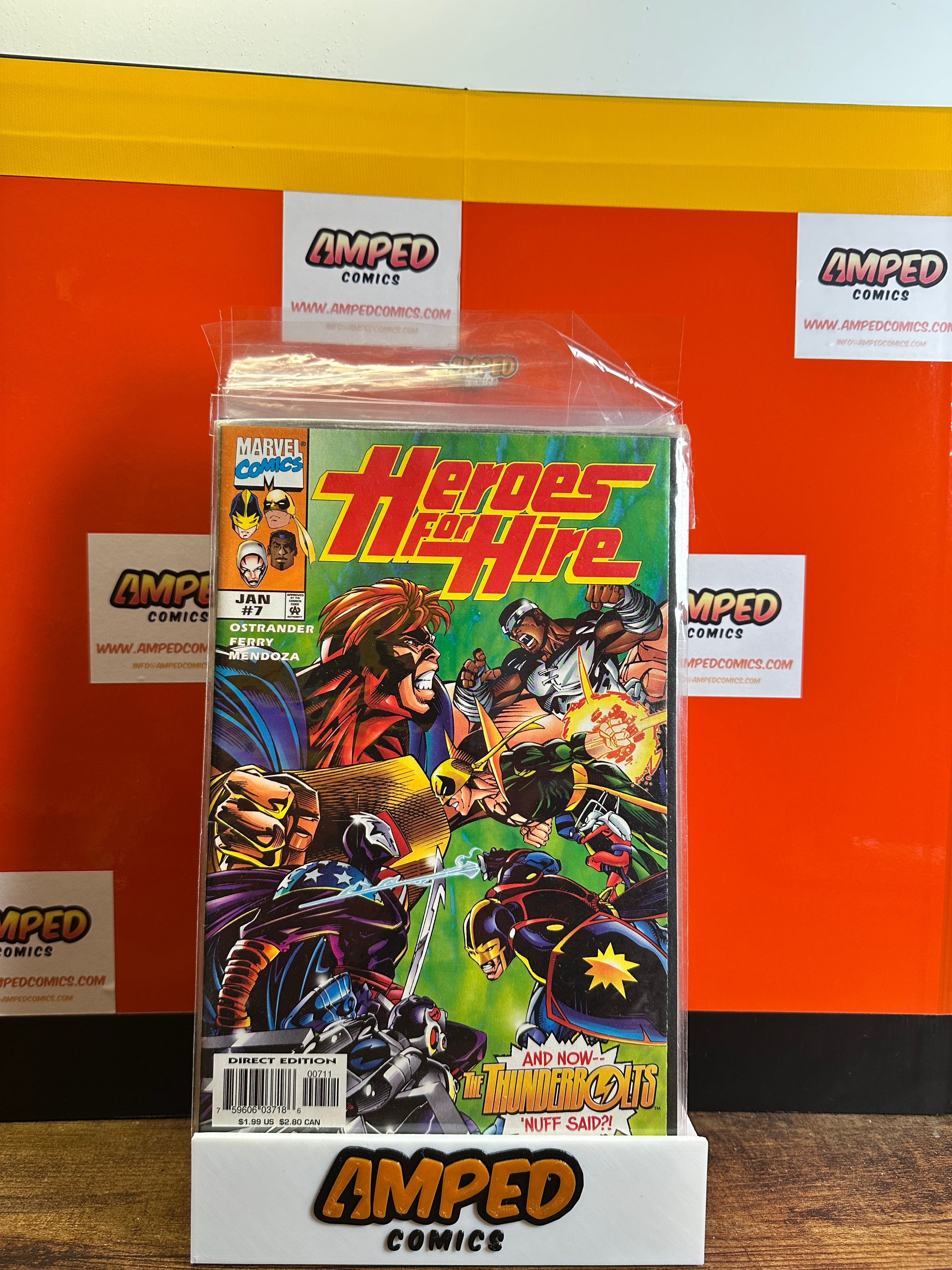 Heroes for Hire #7, published by Marvel Comics in January 1998. Written by John Ostrander with art by Pasqual Ferry and Jaime Mendoza. Features an appearance by the Thunderbolts.