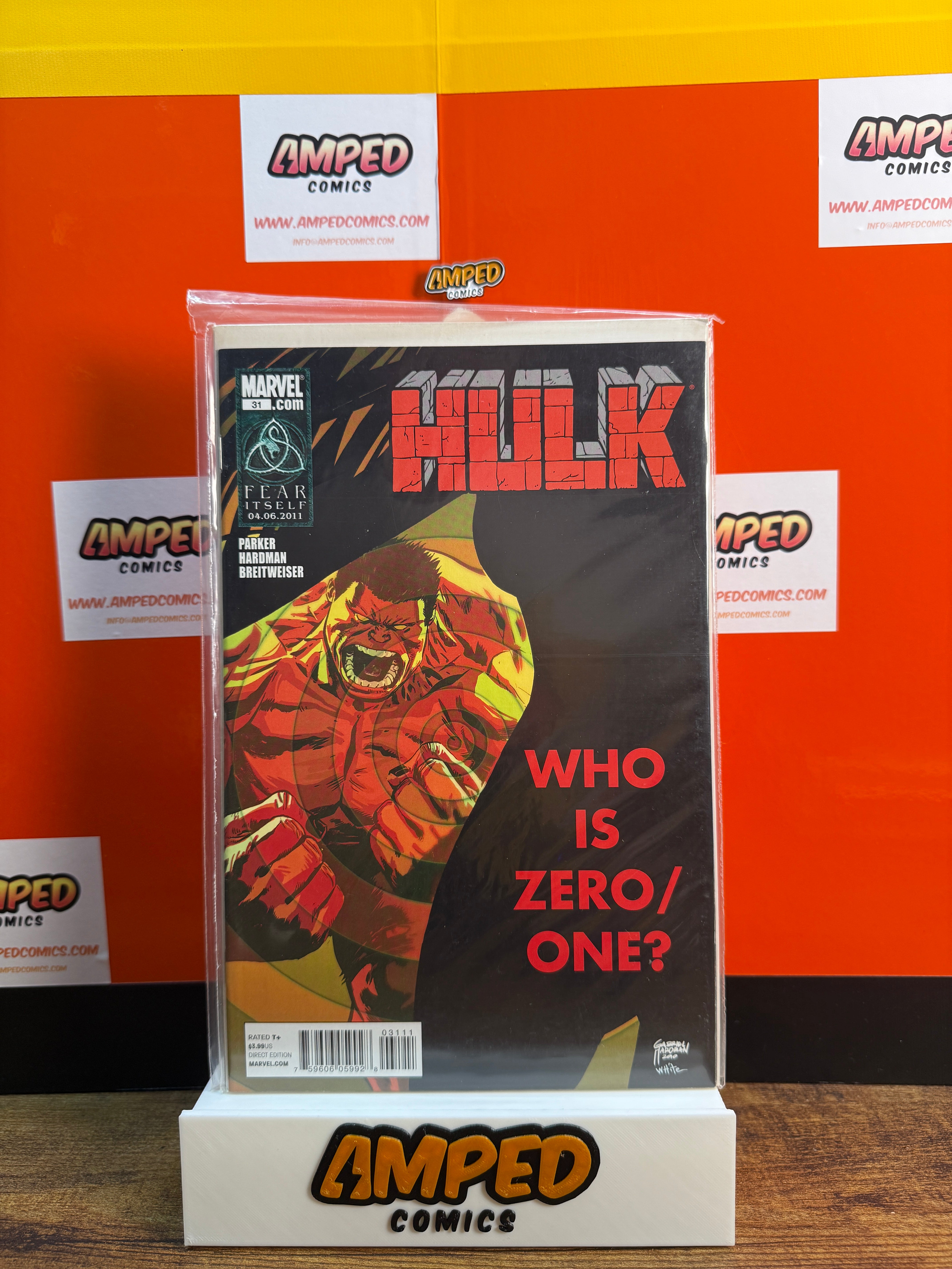Hulk #31, published by Marvel Comics in 2011. Written by Jeff Parker with artwork by Gabriel Hardman and colors by Bettie Breitweiser. This issue is part of the 'Fear Itself' storyline and features the character Zero/One.