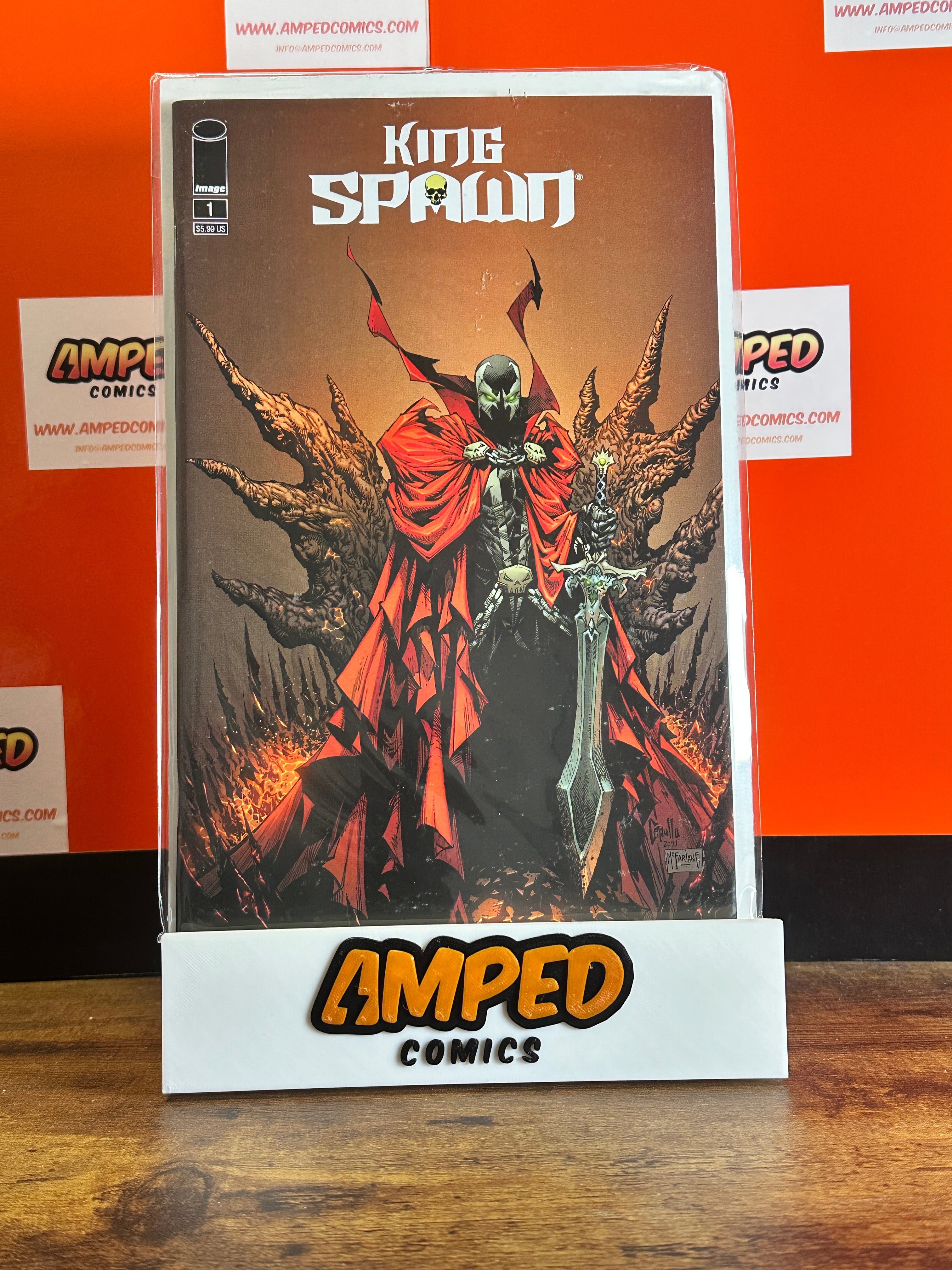 King Spawn #1, published by Image Comics in 2021. Cover art by Todd McFarlane. This issue features the character Spawn and is part of the King Spawn series.