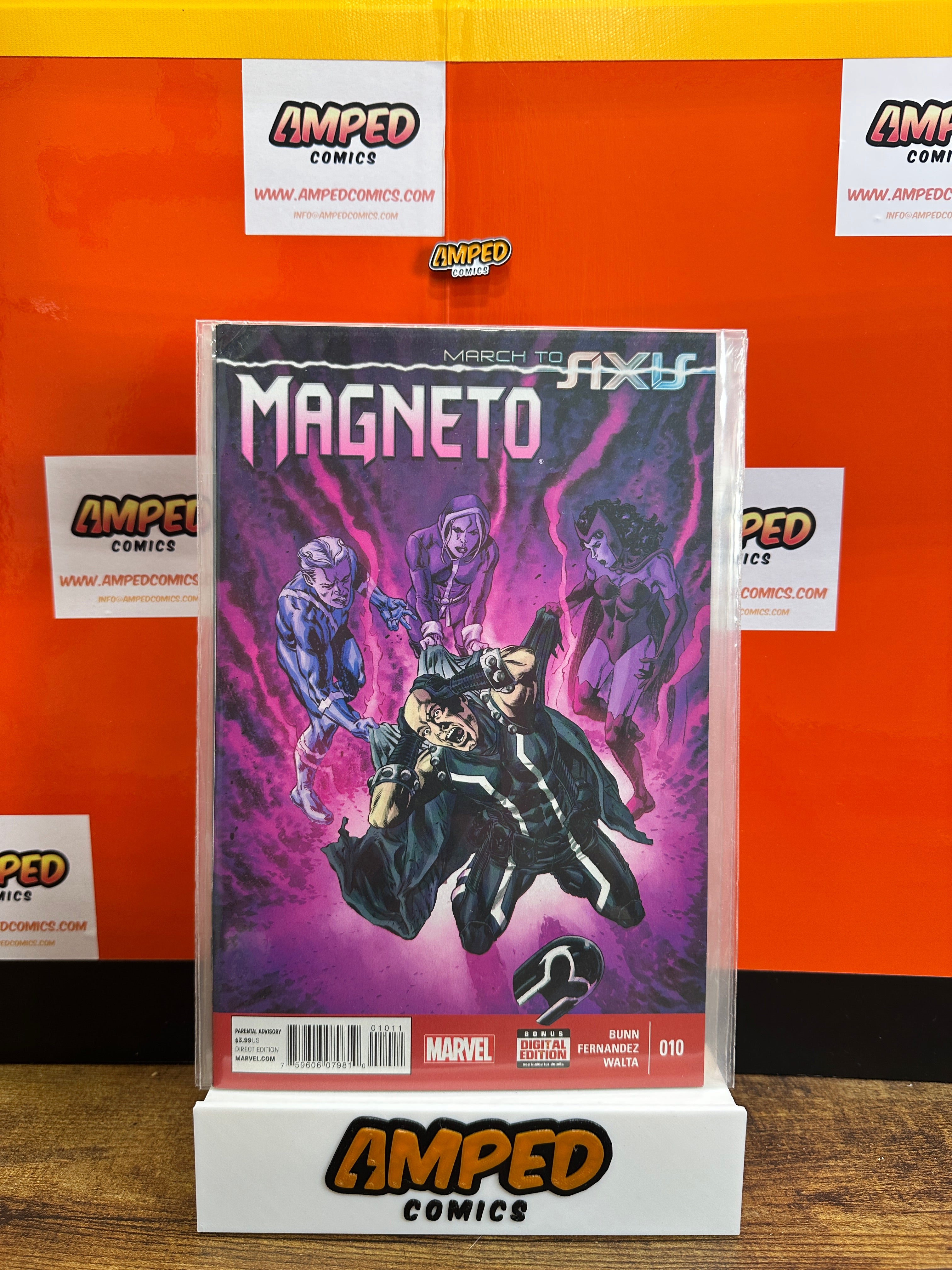 Magneto #10, published by Marvel Comics in 2014. Part of the 'March to AXIS' storyline. Written by Cullen Bunn with artwork by Gabriel Hernandez Walta and Javier Fernandez. Features Magneto on the cover alongside other characters.