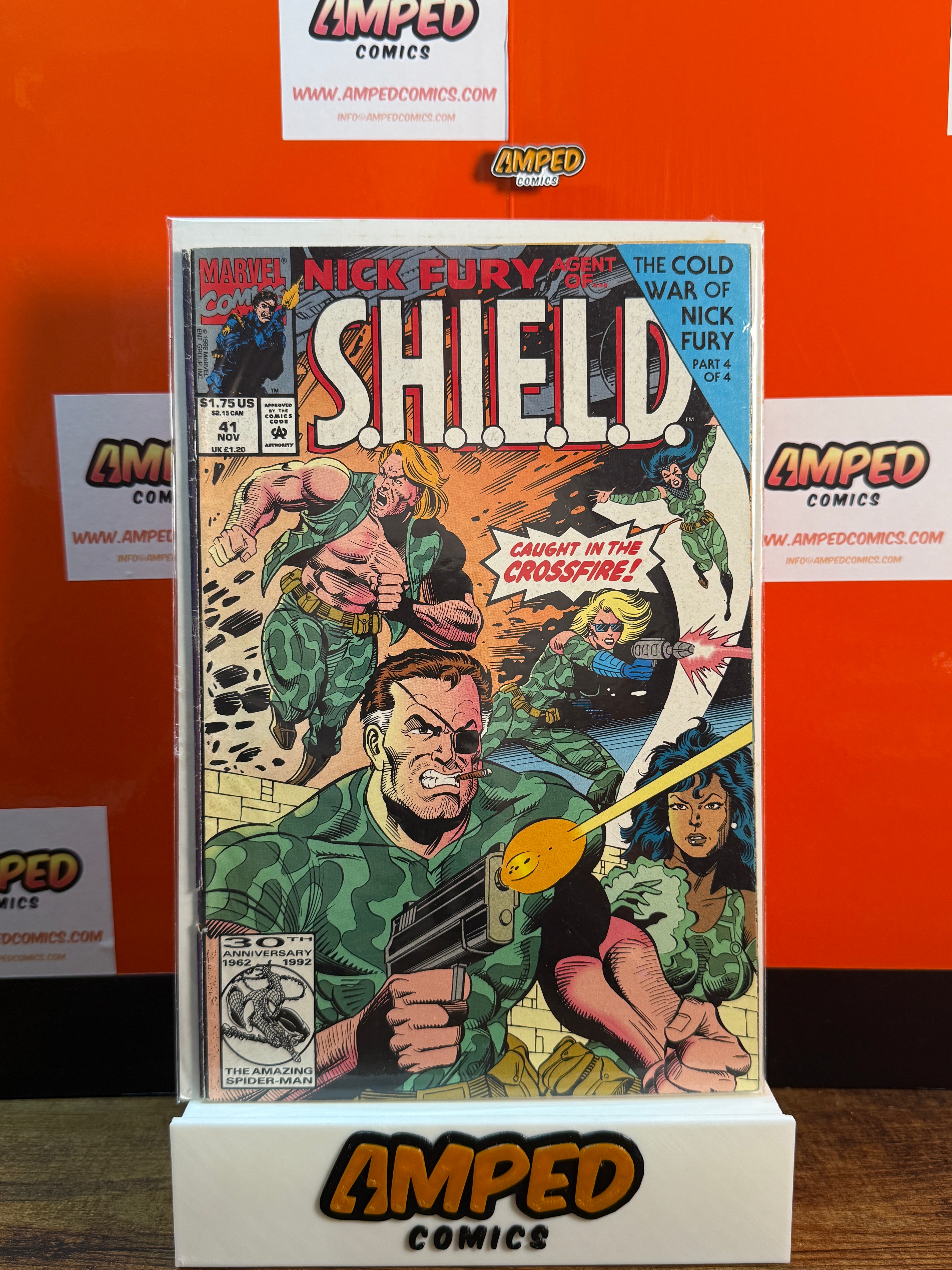 Nick Fury Agent of S.H.I.E.L.D. #41, published by Marvel Comics in November 1992. This issue is part 4 of 'The Cold War of Nick Fury' storyline. Features Nick Fury and supporting characters in an action-packed cover.