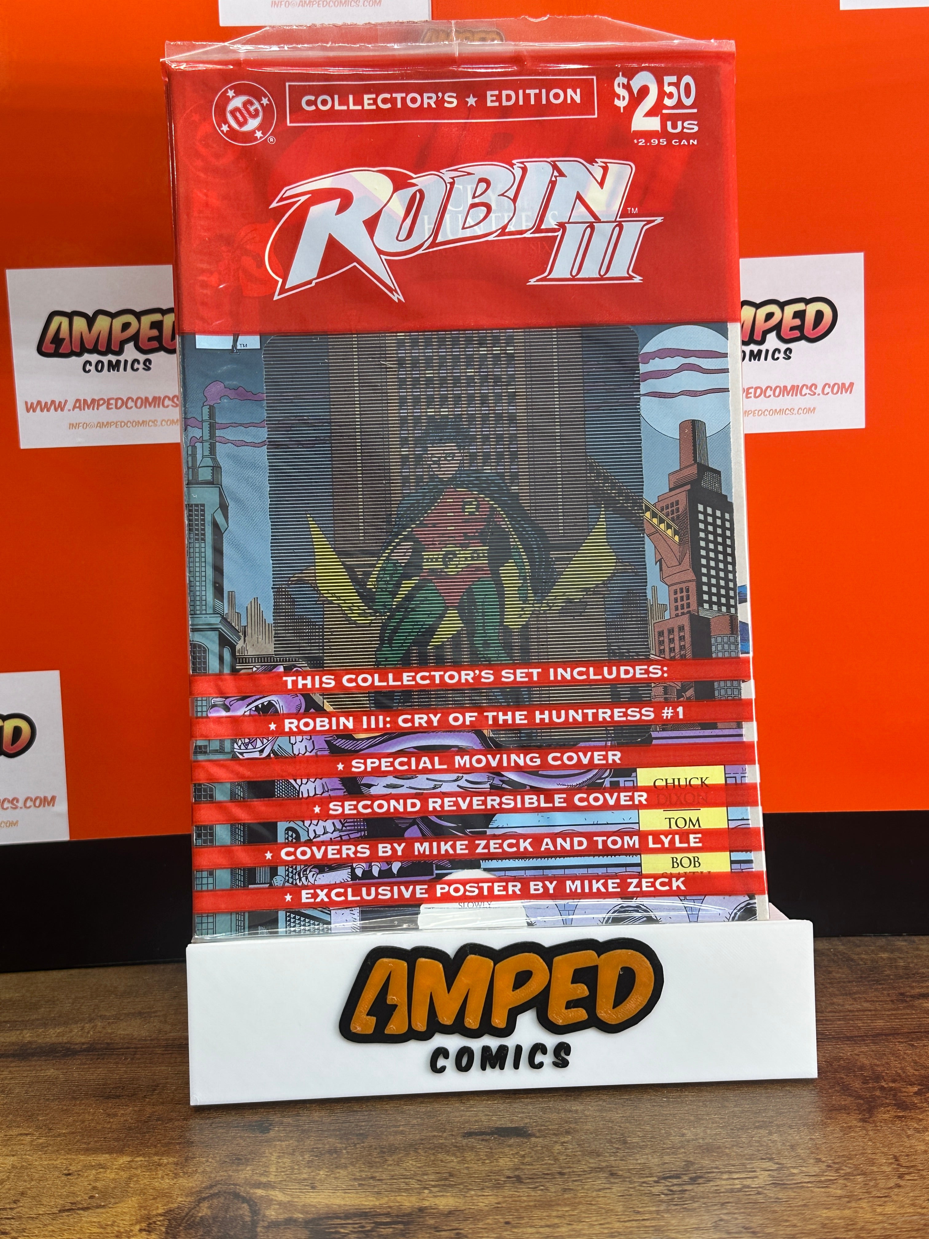 Robin III: Cry of the Huntress #1 Collector's Edition published by DC Comics. This set includes a special moving cover, a second reversible cover, covers by Mike Zeck and Tom Lyle, and an exclusive poster by Mike Zeck. Written by Chuck Dixon with art by Tom Lyle and Bob Smith.