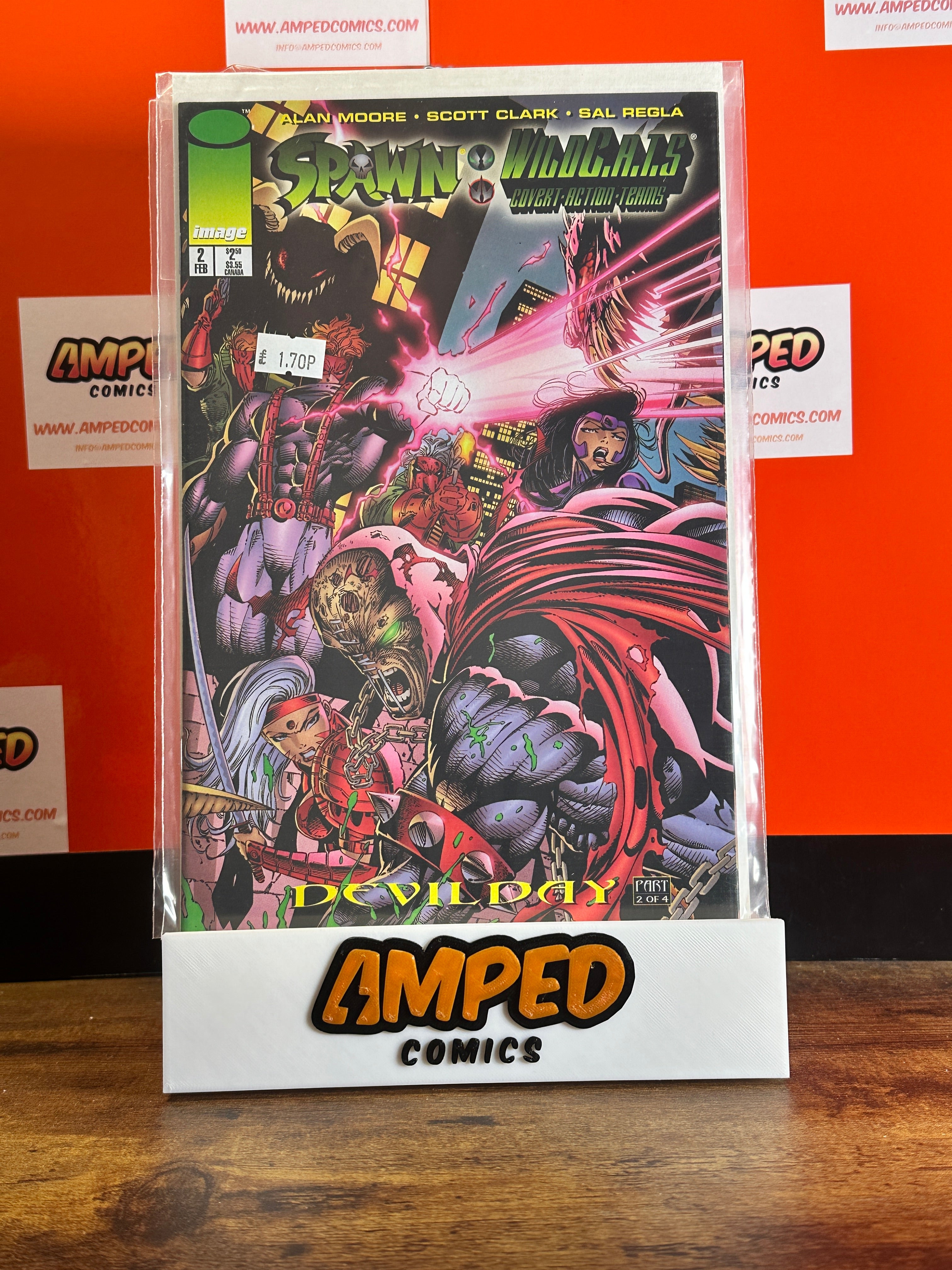 Spawn/WildC.A.T.s #2, published by Image Comics in February 1996. Written by Alan Moore with artwork by Scott Clark and Sal Regla. Features characters Spawn and the WildC.A.T.s team in a crossover storyline.