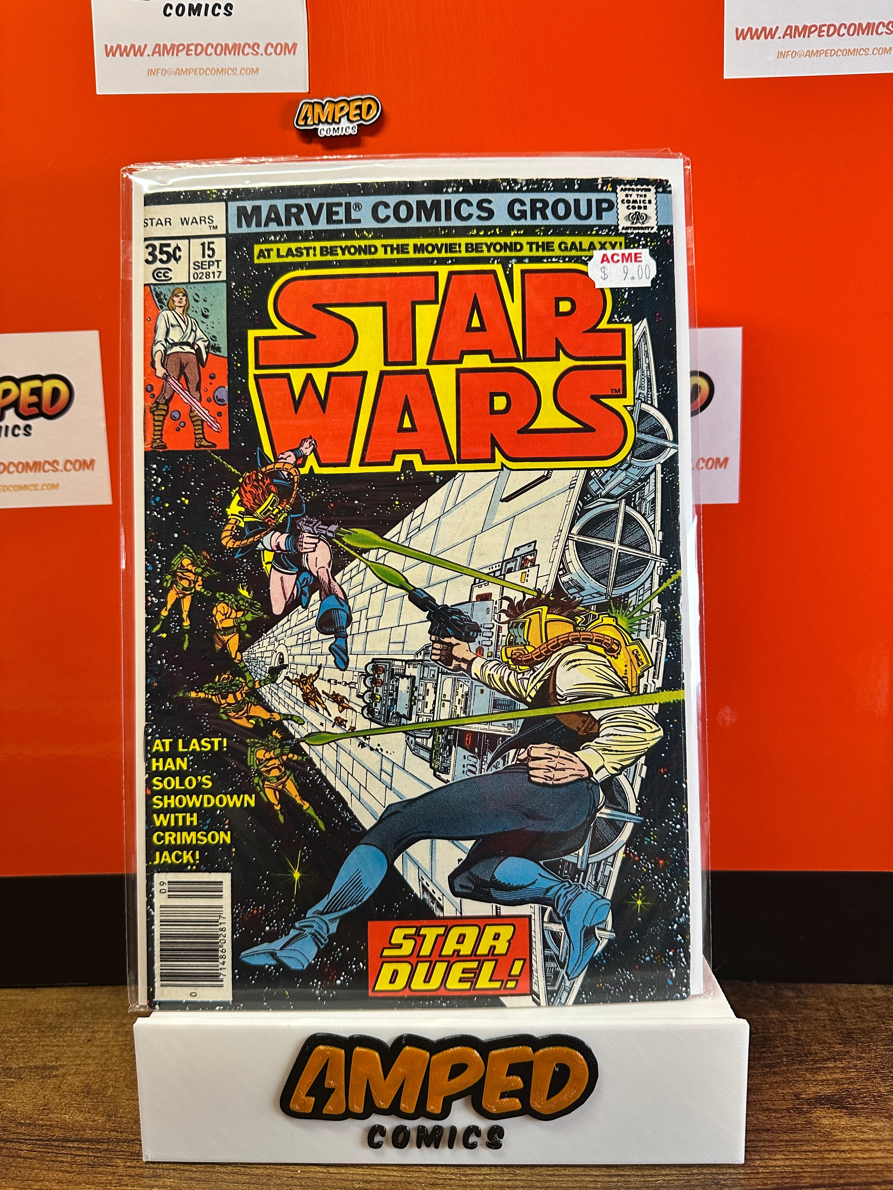Star Wars #15, published by Marvel Comics in September 1978. This issue features Han Solo's showdown with Crimson Jack. Written by Archie Goodwin with artwork by Carmine Infantino and Terry Austin. Part of the original Star Wars comic series.