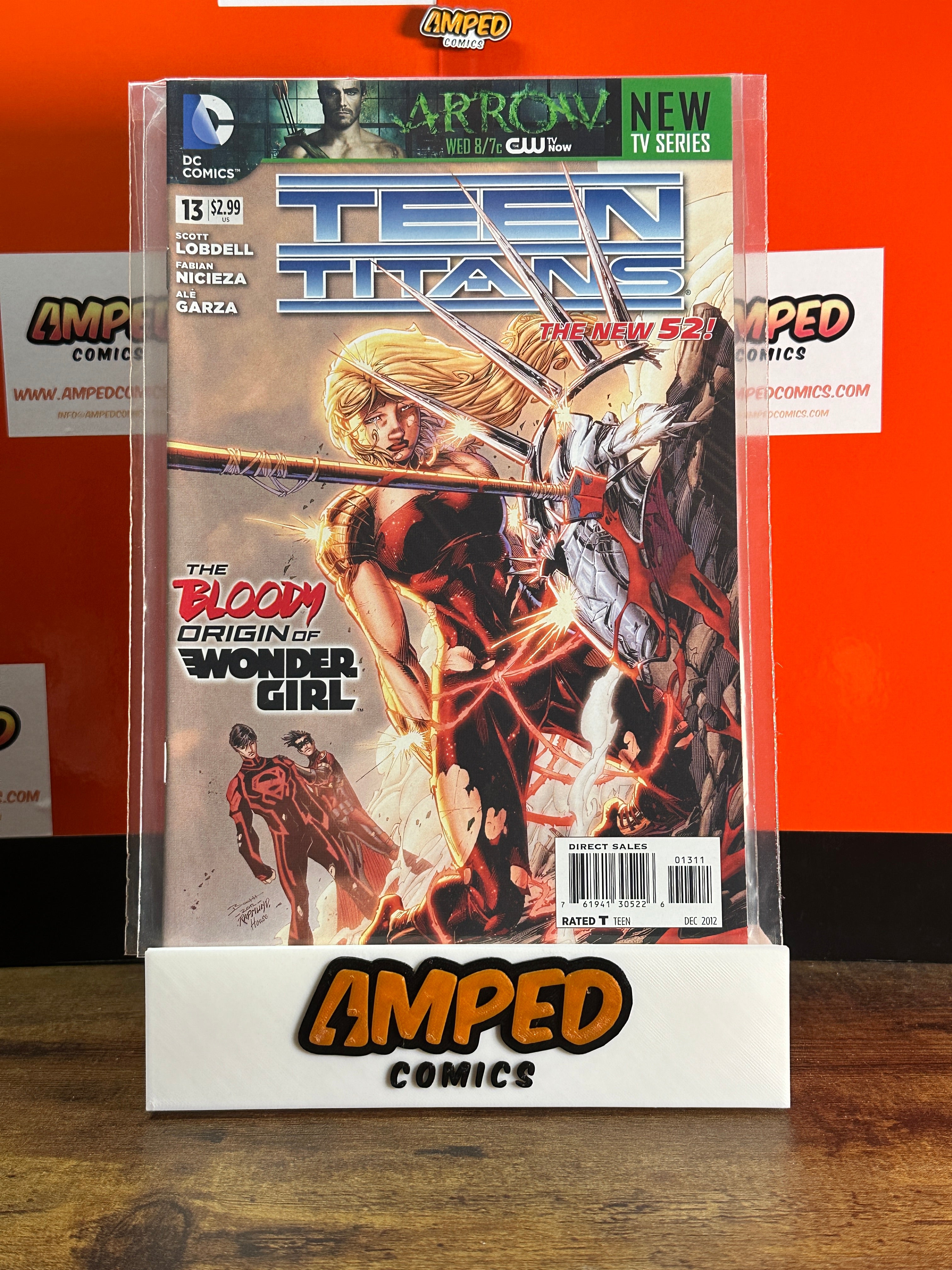Teen Titans #13, published by DC Comics in December 2012. Written by Scott Lobdell with art by Fabian Nicieza and Ale Garza. Features the 'Bloody Origin of Wonder Girl' storyline. Part of The New 52 series.