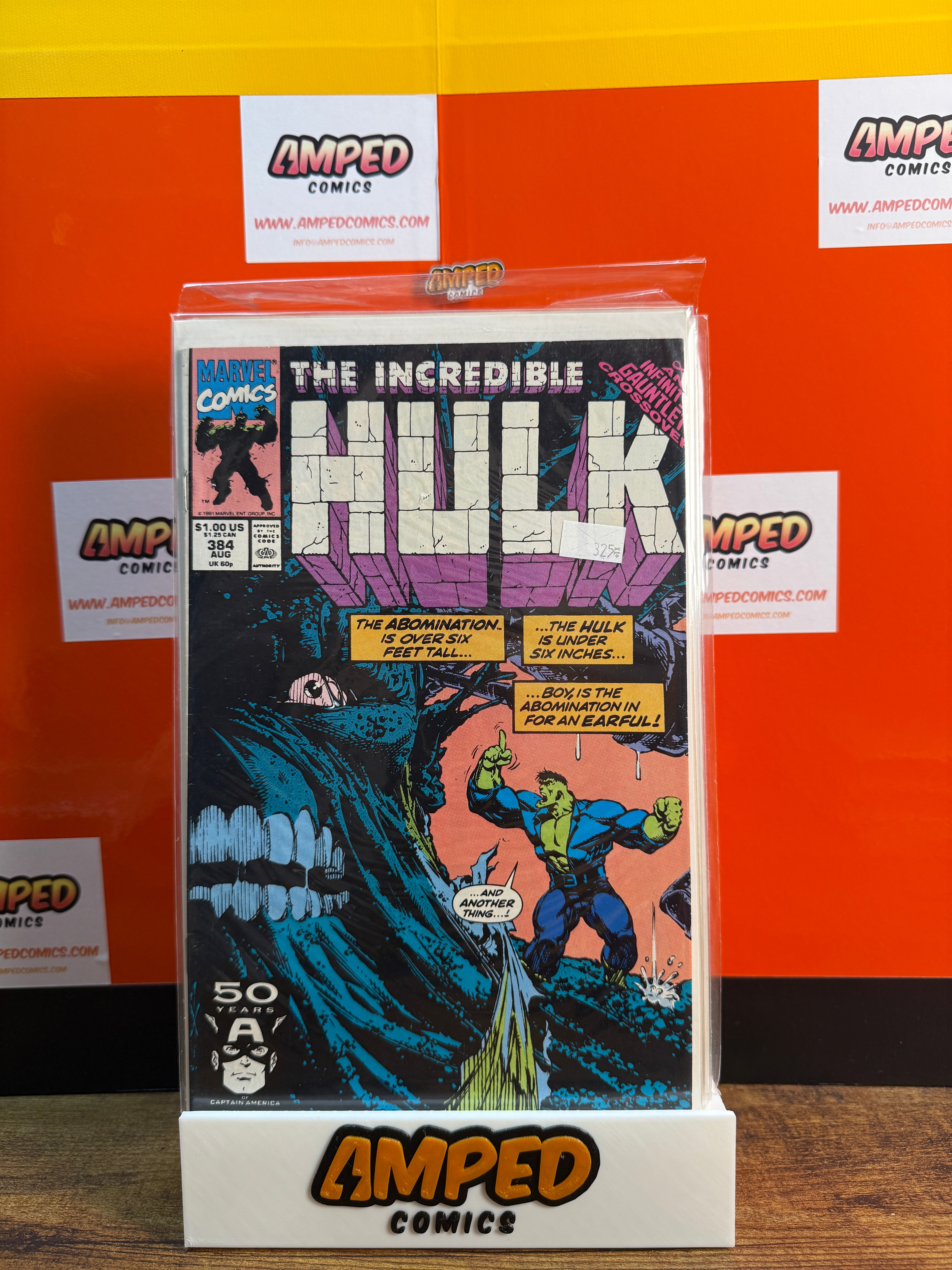 The Incredible Hulk #384, published by Marvel Comics in 1991. Written by Peter David with art by Dale Keown. Features appearances by Hulk and Abomination. Part of the Modern Age of comics.