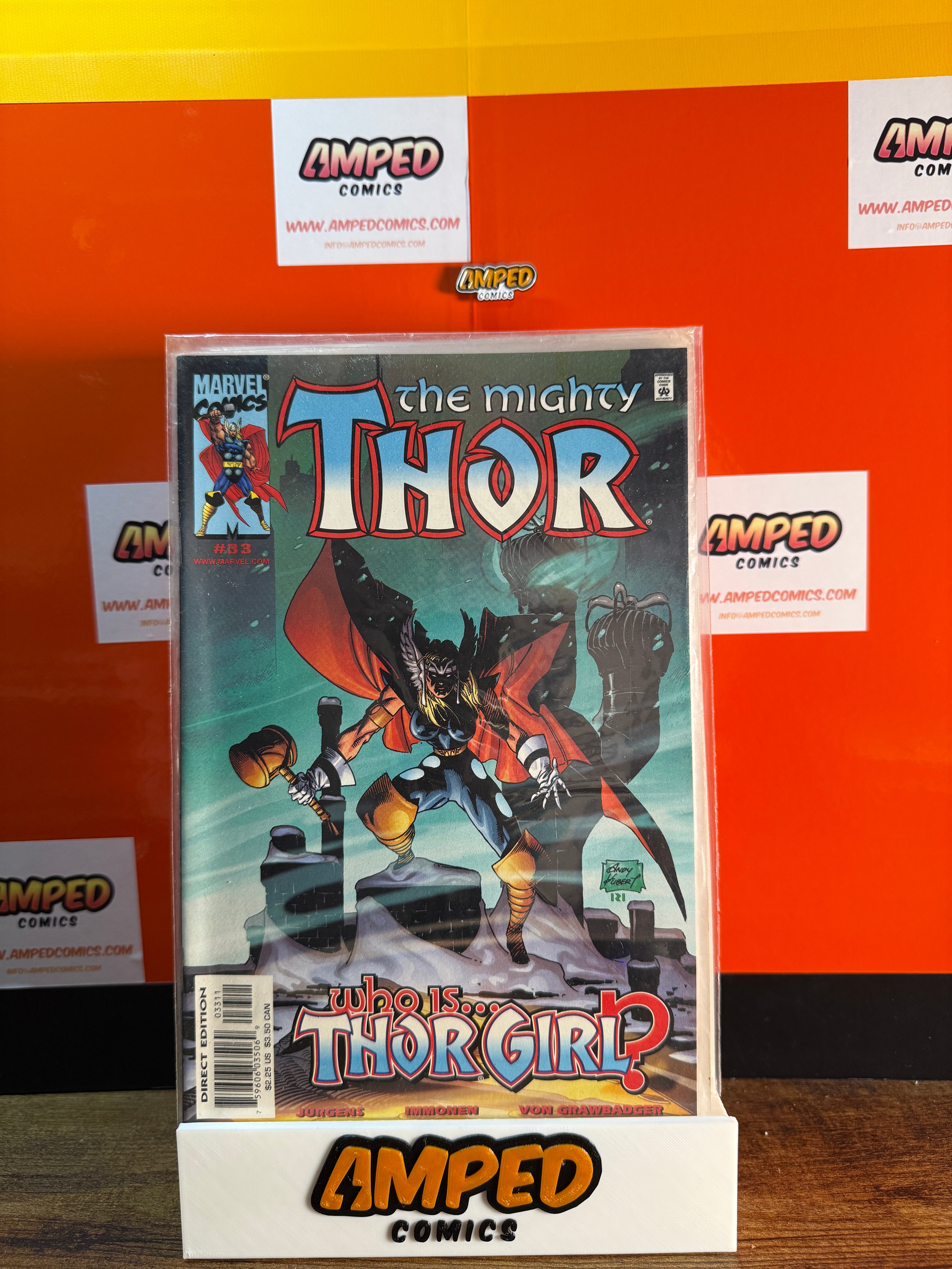 The Mighty Thor #33, published by Marvel Comics. Written by Dan Jurgens with artwork by Andy Kubert and Scott Hanna. The storyline explores the introduction of Thor Girl. Published in 2001.