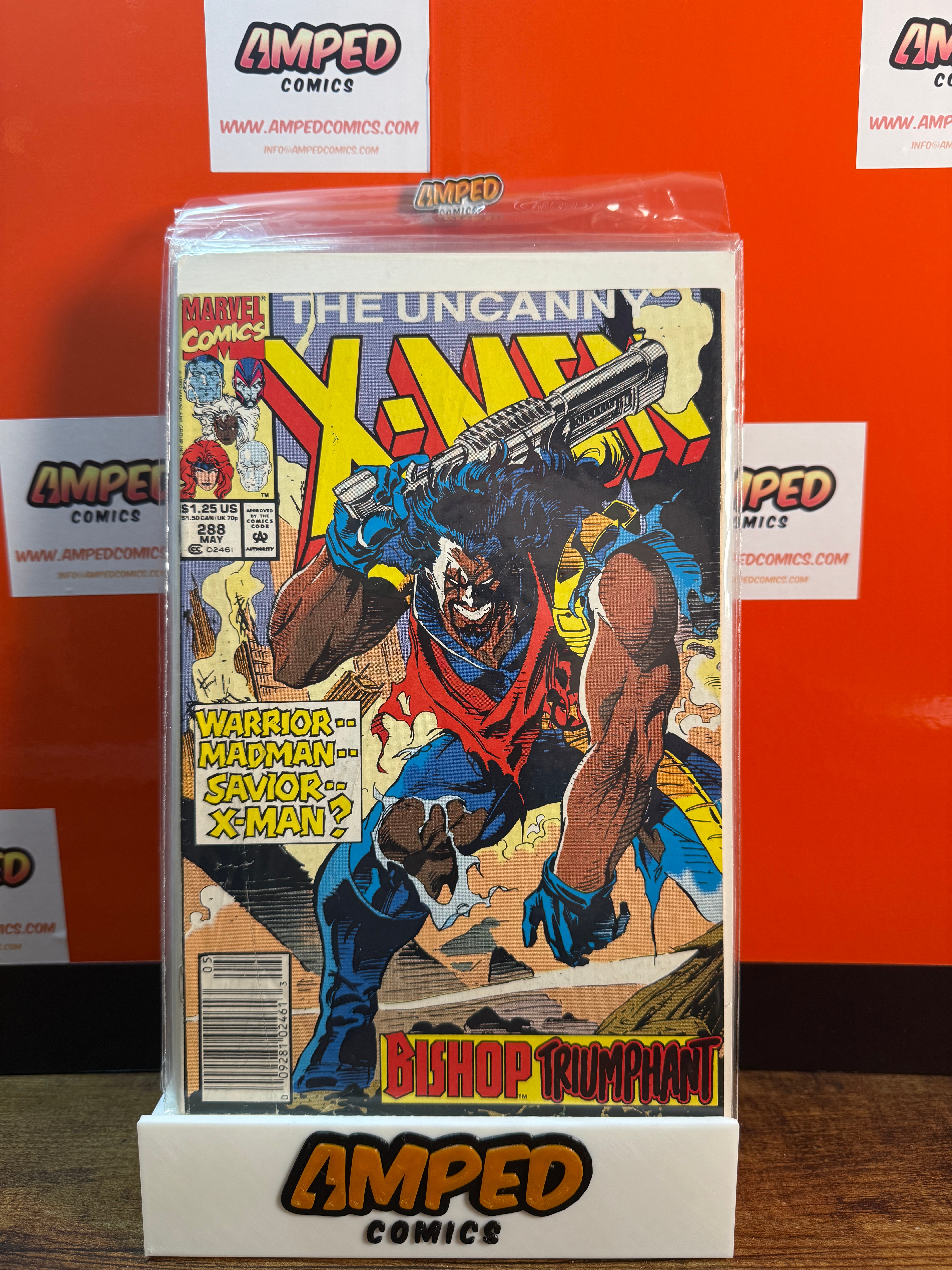 The Uncanny X-Men #288, published by Marvel Comics in May 1992. This issue features the storyline 'Bishop Triumphant' and showcases the character Bishop. Written by Scott Lobdell with art by John Romita Jr.