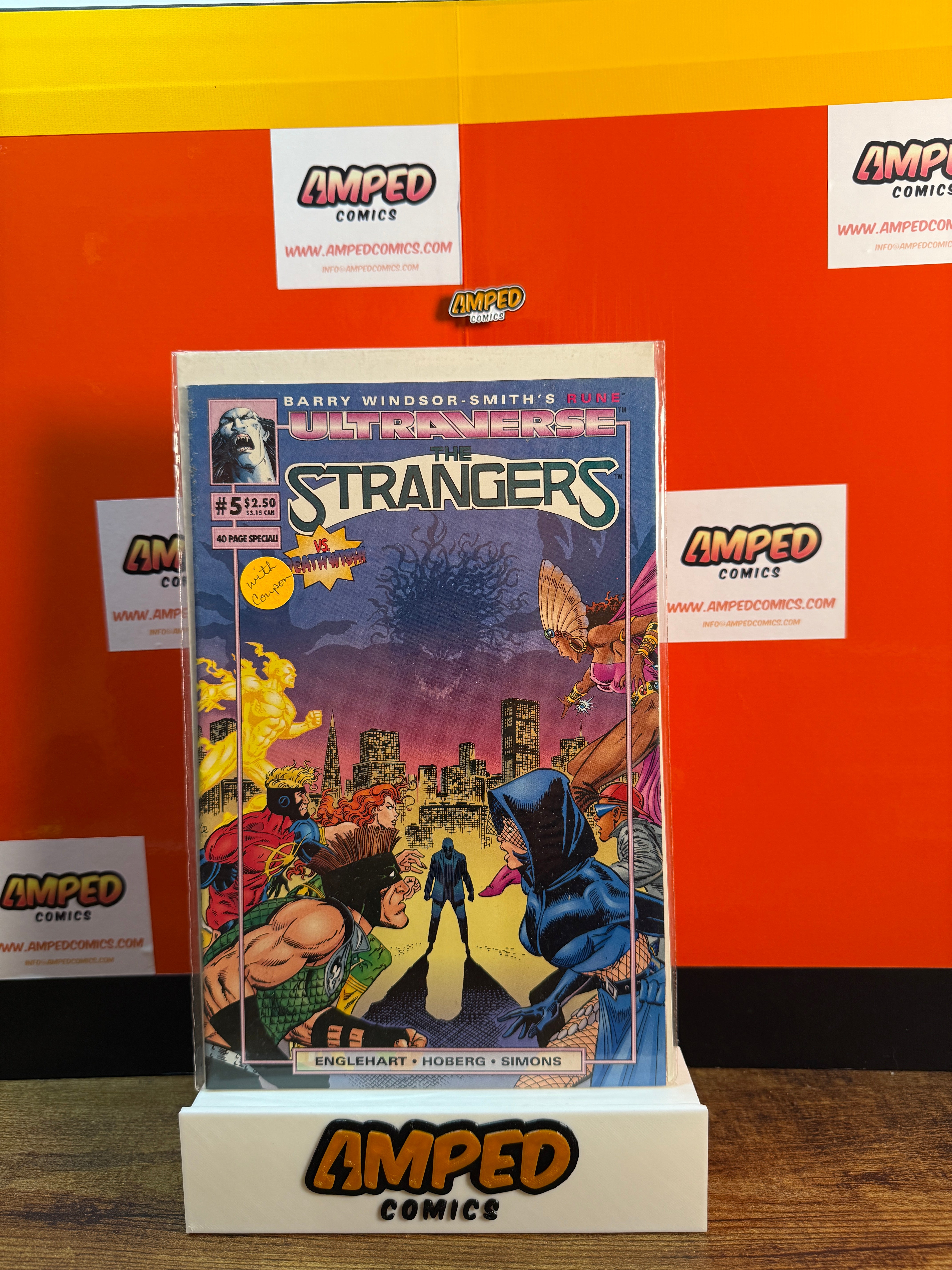 Ultraverse: The Strangers #5, published by Malibu Comics in 1993. Written by Steve Englehart with artwork by Rick Hoberg and Tim Eldred. Features a crossover with Rune and a 40-page special issue.