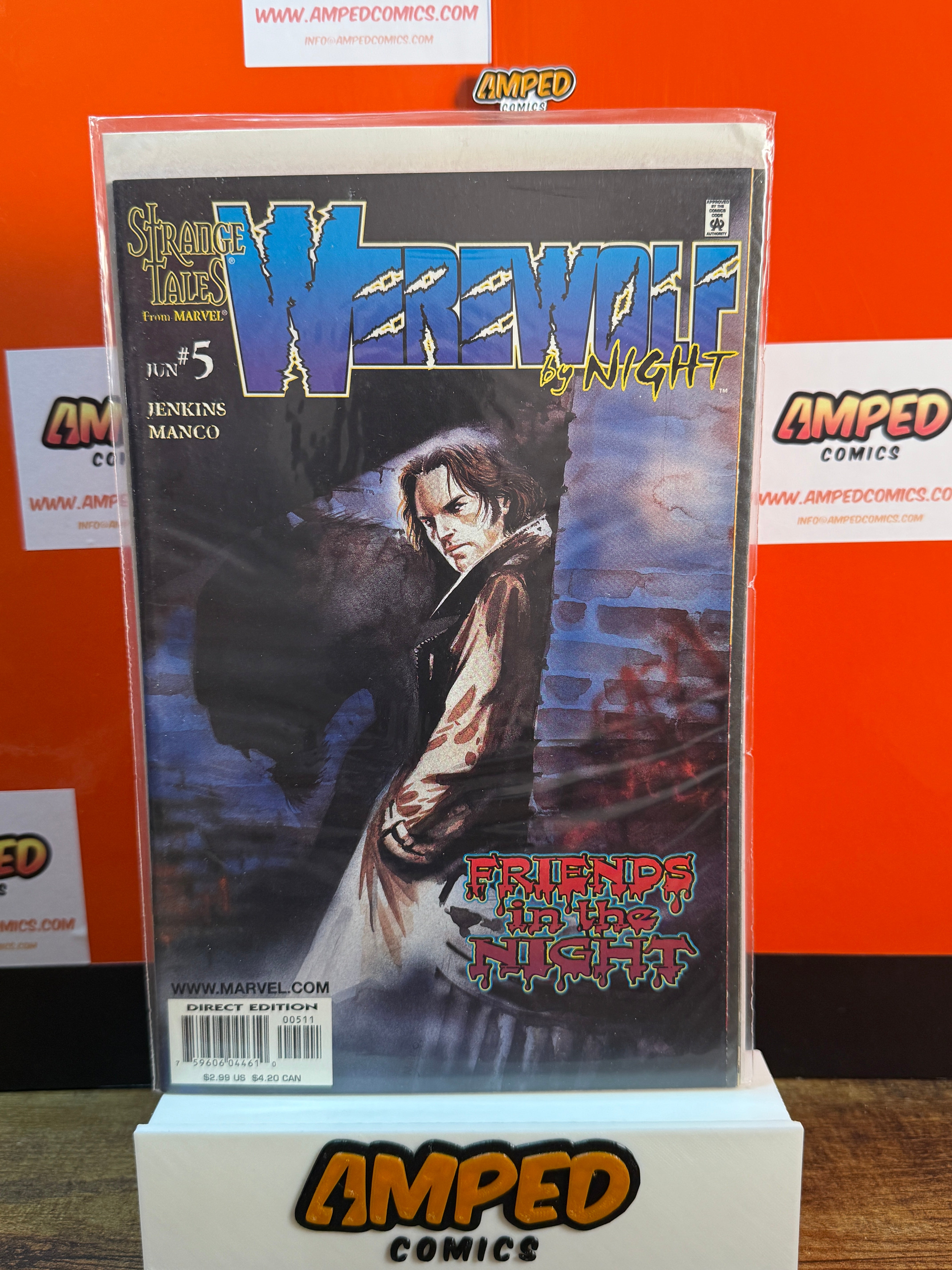 Werewolf by Night #5, published by Marvel Comics in June 1998. Part of the Strange Tales series. Written by Paul Jenkins with artwork by Leonardo Manco. The storyline is titled 'Friends in the Night.'