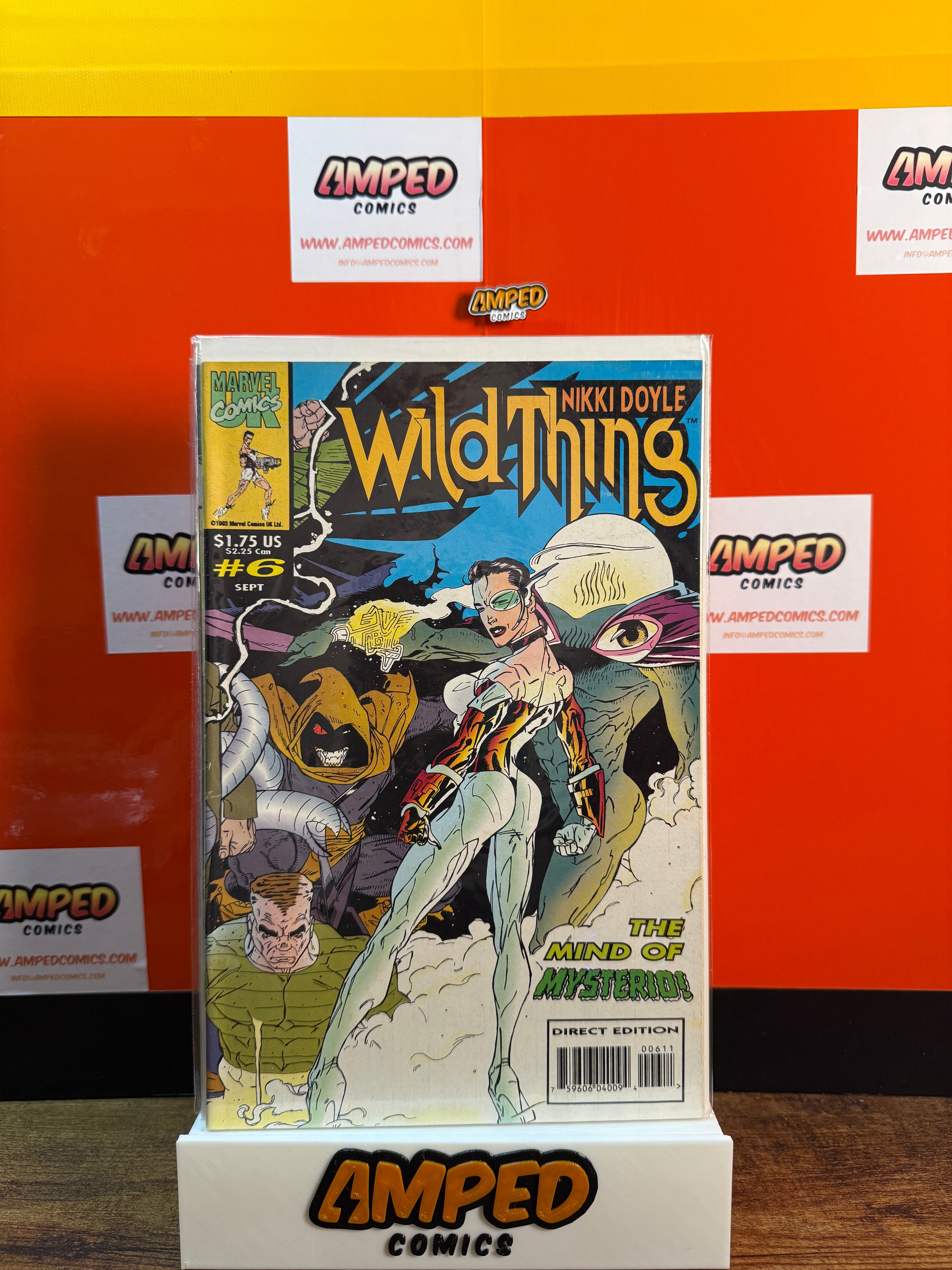 Wild Thing #6, published by Marvel Comics in September 1993. This issue features Nikki Doyle and the storyline 'The Mind of Mysterio!' with cover art showcasing the character and supporting cast. Direct Edition.